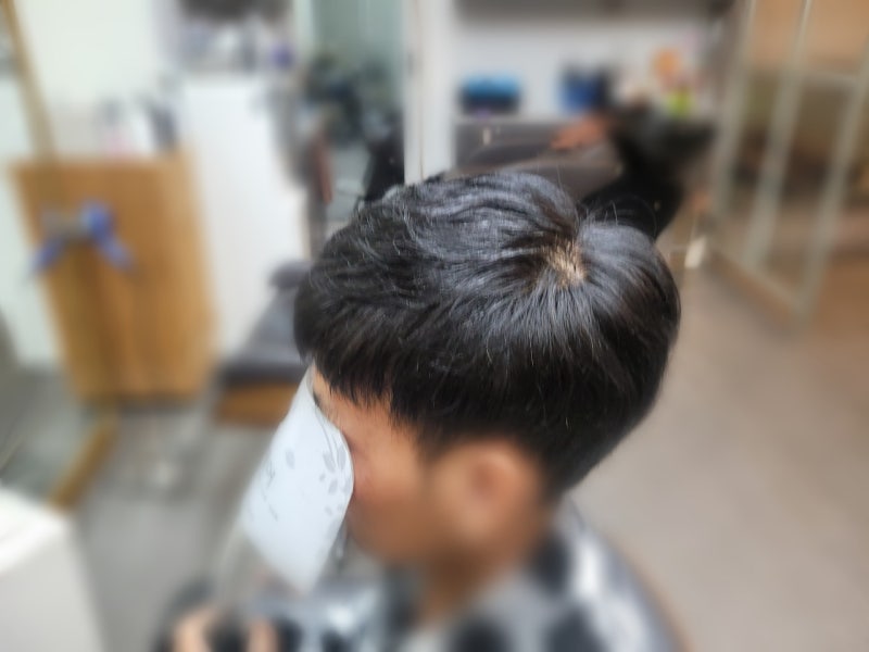 먼저 아버지의 기존 머리를 보면 흰머리가 군데군데 보이고 검은머리 70%, 흰머리 30% 비율로 섞어서 자연스럽게 보이도록 흰머리 가발을 제작했습니다.