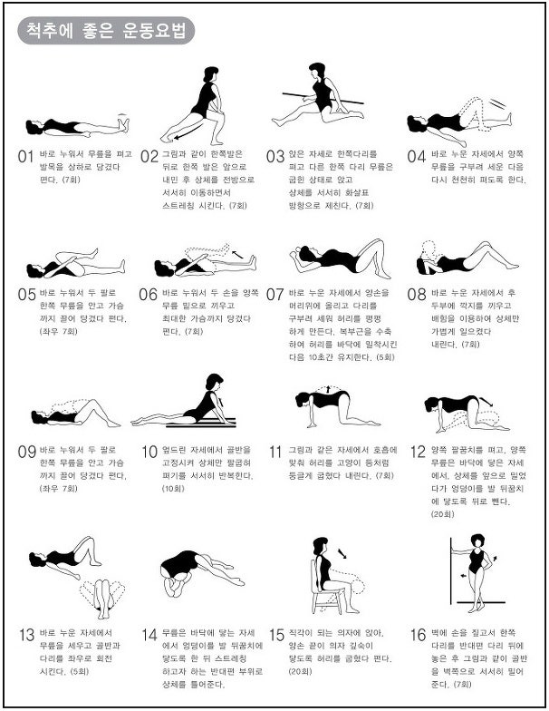 오래 앉아 일을 하다 보면 척추에 부담이 되는 나쁜 자세가 반복되면서 결국 척추에 부하가 또박또박 쌓이고 아픔으로 나타나는 일이 있습니다. 잘못된 자세는 척추 주변 근육, 인대 등의 부담을 가중시키고 척추 불균형을 일으키고 결국 허리 디스크, 척추관 협착증 등 척추 질환으로 이어질 가능성이 있으므로 세심한 관리가 필요합니다. 허리에 좋은 자세는 엉덩이 의자를 깊이 넣고 허리를 세우기 무릎이 엉덩이보다 높게 발등에 발판을 두는 것, 운전시 페달과 다리가 너무 멀지 않도록 이끌어 앉으면 허리의 부담을 최소화시킬 수 있습니다. 또 다리를 꼬고 앉지 않는 습관을 들이는 것이 포인트입니다. 허리에 부드럽게 스트레치